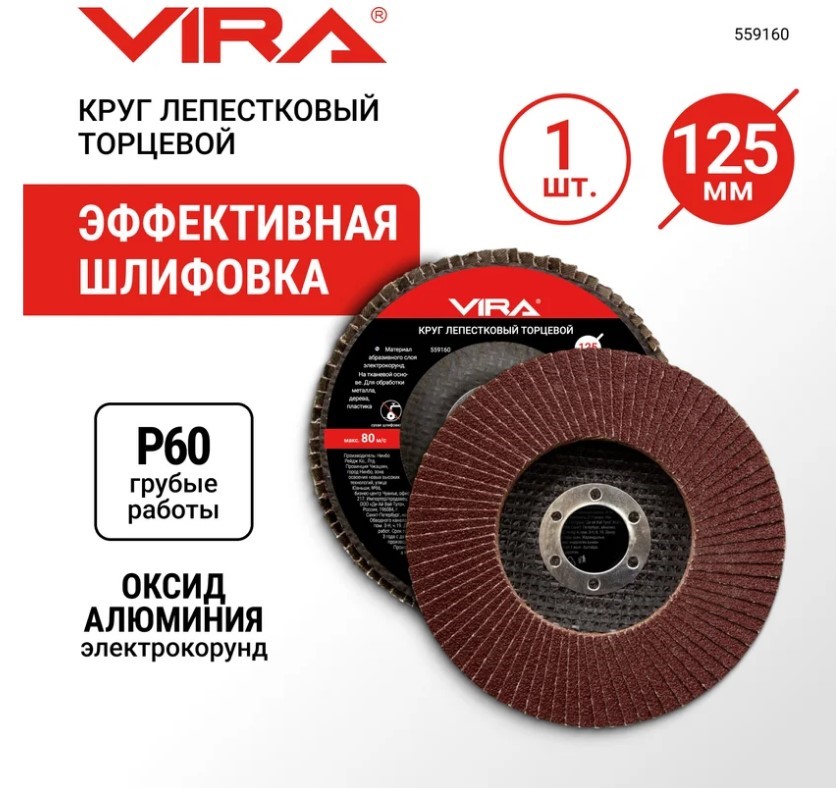Круг лепестковый торцевой 125х22мм P60 VIRA
