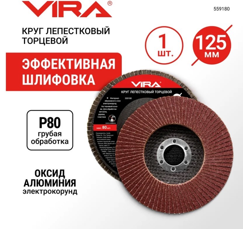 Круг лепестковый торцевой 125х22мм P80 VIRA