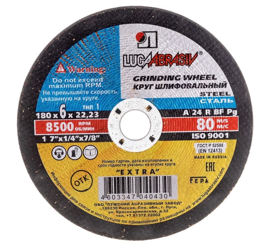 Круг зачистной 180х6x22.2 мм по металлу LUGAABRASIV