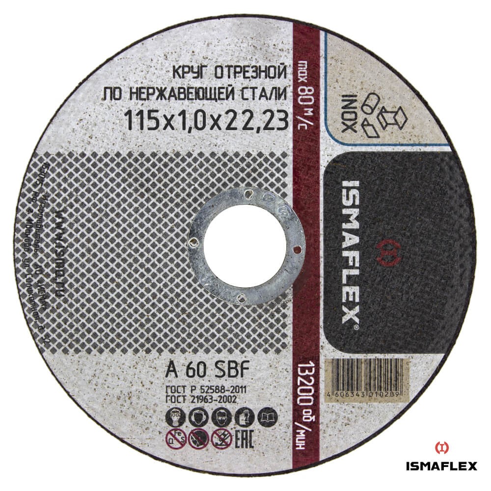 Круг отрезной 115х1.0x22.2 мм по нержавеющей стали ISMA