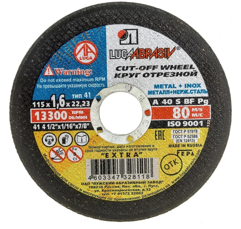 Круг отрезной 115х1.6x22.2 мм по металлу и нержавеющей стали LUGAABRASIV