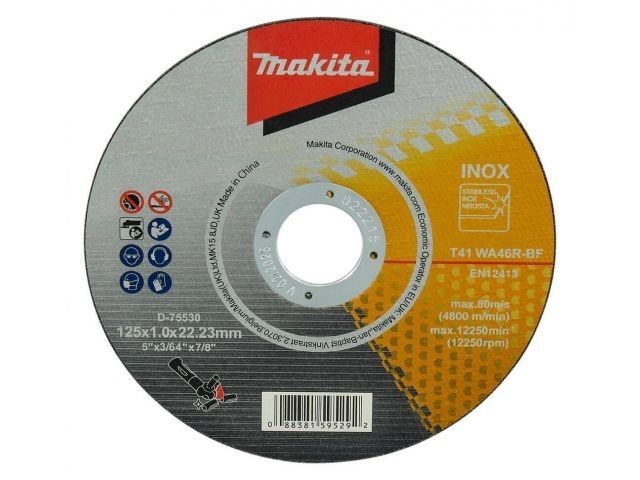 Круг отрезной 125х1.0х22,22 мм для стали/нержавеющей стали плоский WA46R MAKITA