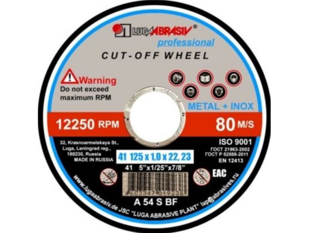 Круг отрезной 125х1.0x22.2 мм по металлу Professional LUGAABRASIV