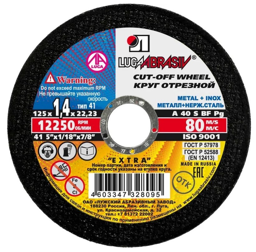 Круг отрезной 125х1.4x22.2 мм по металлу и нержавеющей стали LUGAABRASIV