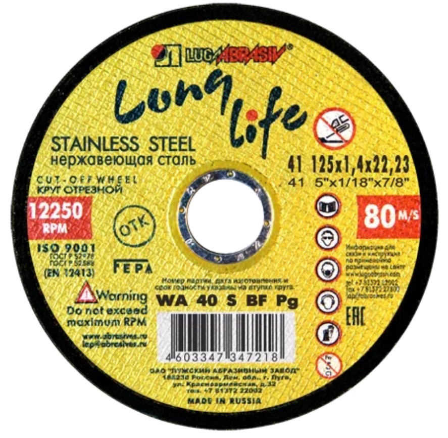 Круг отрезной 125х1.4x22.2 мм по нержавеющей стали LUGAABRASIV