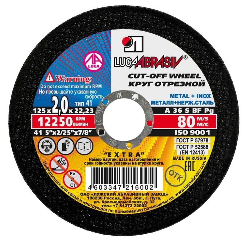 Круг отрезной 125х2.0x22.2 мм по металлу м нержавеющей стали LUGAABRASIV