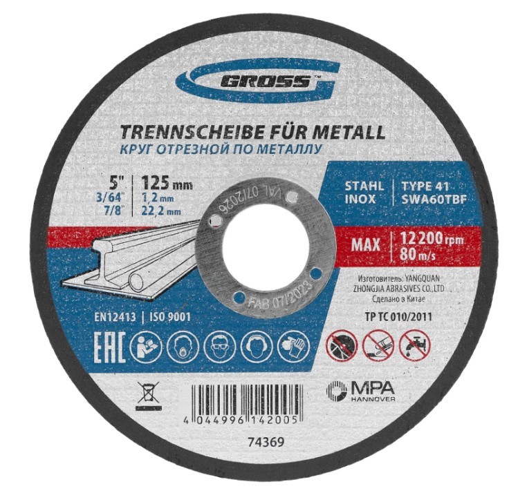 Круг отрезной 125x1.2х22,2 мм по металлу и нержавеющей стали Gross