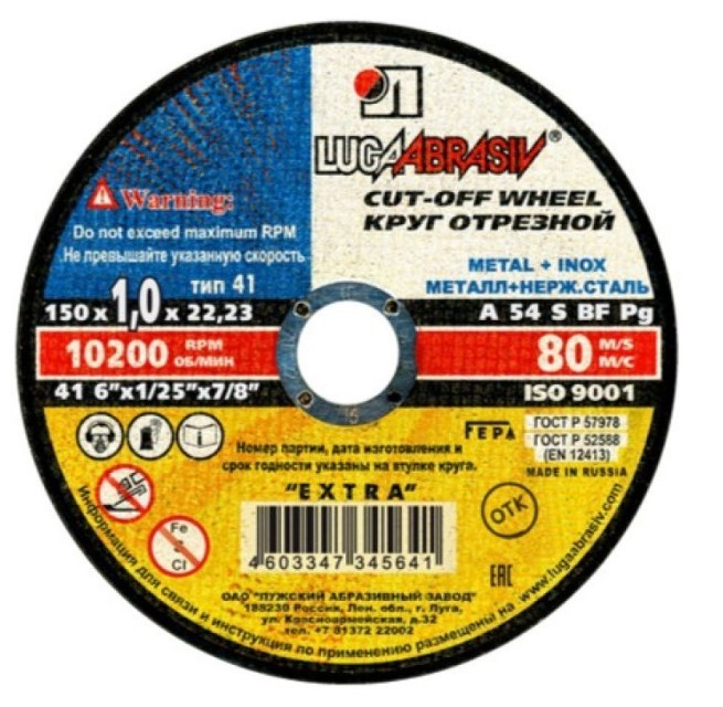 Круг отрезной 150х1.0x22.2 мм по металлу и нержавеющей стали LUGAABRASIV