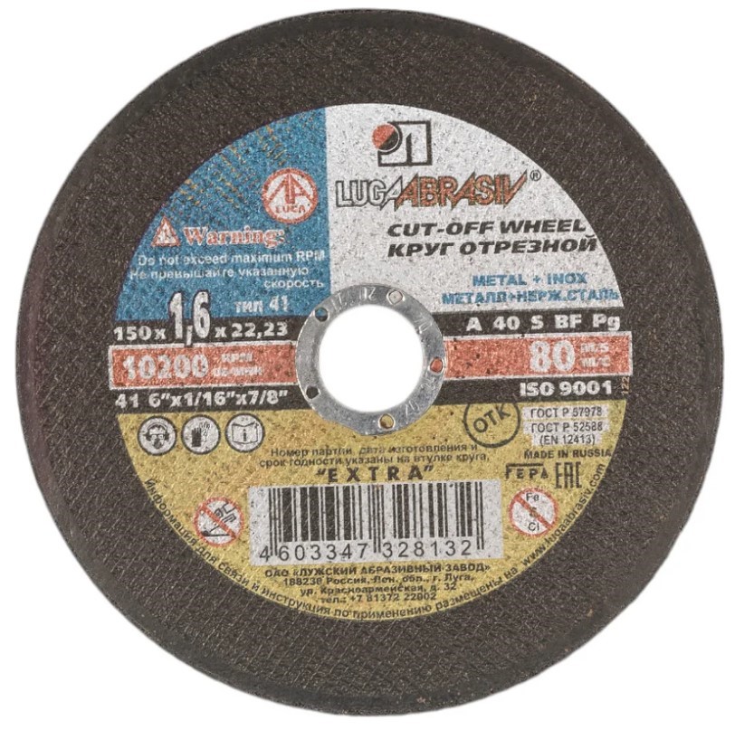 Круг отрезной 150х1.6x22.2 мм по металлу и нержавеющей стали LUGAABRASIV