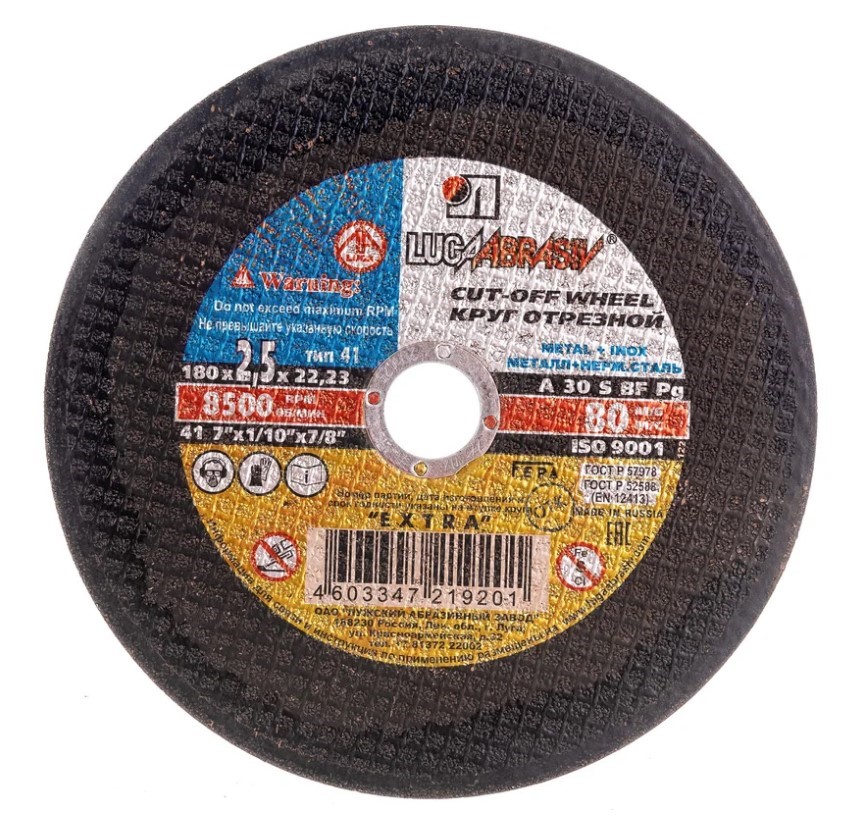 Круг отрезной 180х2.5x22.2 мм по металлу и нержавеющей стали LUGAABRASIV