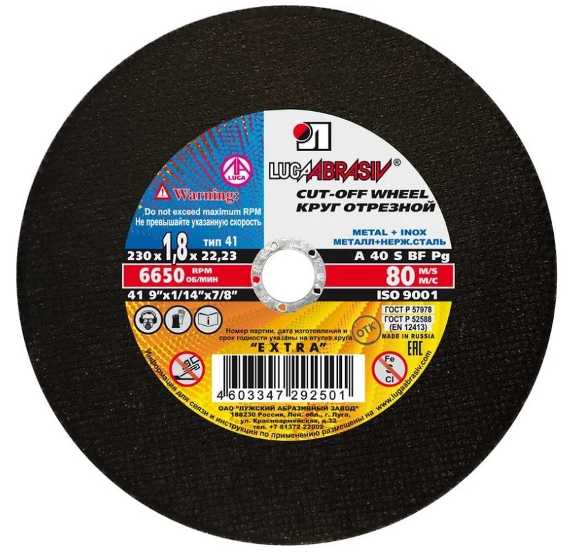 Круг отрезной 230х1.8x22.2 мм по металлу и нержавеющей стали LUGAABRASIV
