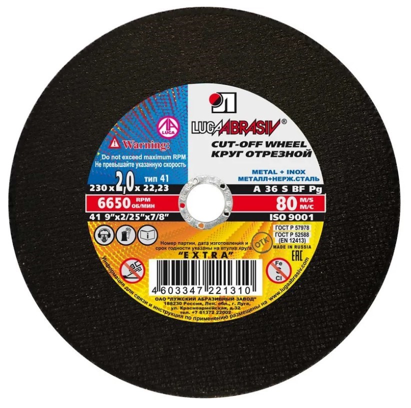 Круг отрезной 230х2.0x22.2 мм по металлу и нержавеющей стали LUGAABRASIV