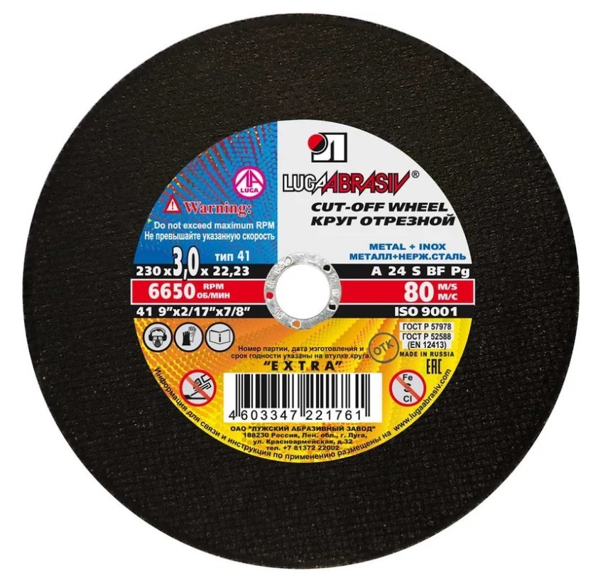 Круг отрезной 230х3.0x22.2 мм по металлу и нержавеющей стали LUGAABRASIV