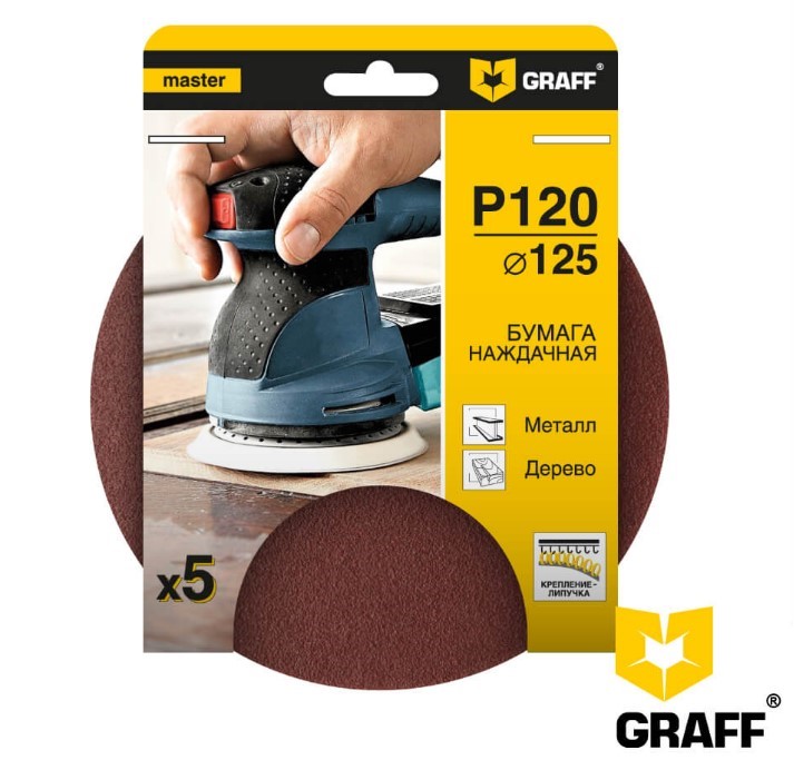 Круг шлифовальный 125 мм P120 без отверстий GRAFF - среднезернистый и предназначен для шлифовки.
