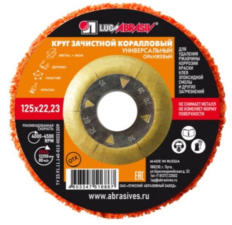 Круг зачистной коралловый 125x22 мм (универсальный) LUGAABRASIV