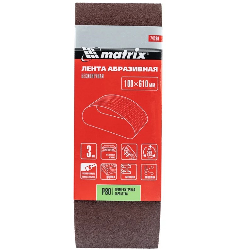 Лента абразивная бесконечная, P 80, 100 х 610 мм, 3 шт Matrix