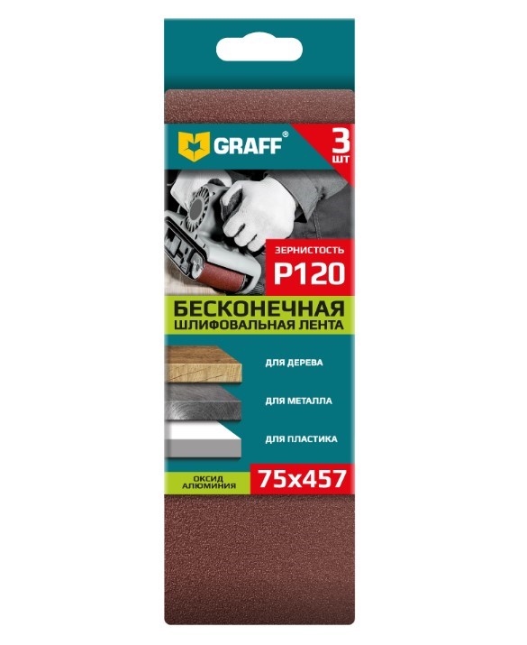 Лента шлифовальная 75х457мм Р120 бесконечная 3 шт. GRAFF