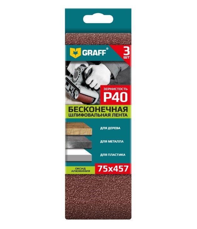 Лента шлифовальная 75х457мм Р40 бесконечная 3 шт. GRAFF