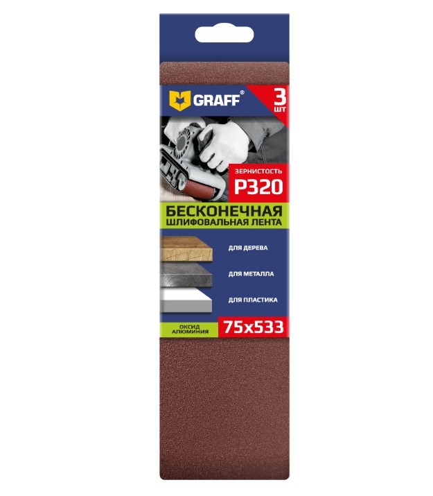 Лента шлифовальная 75х533мм Р320 бесконечная 3 шт. GRAFF