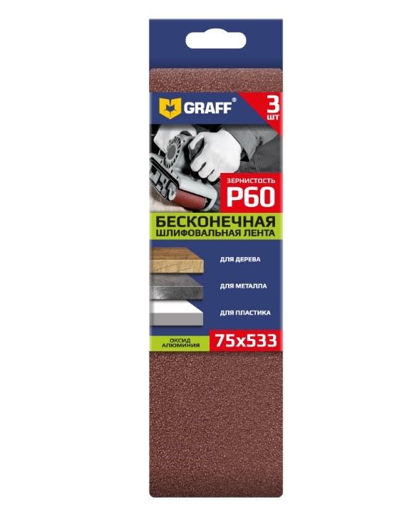 Лента шлифовальная 75х533мм Р60 бесконечная 3 шт. GRAFF