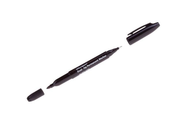 Маркер перманентный двухсторонний OFFICESPACE черный (DPM_1574BL) предназначен для письма на большинстве поверхностей: бумаге, коже, пластмассе, металле, резине, ткани. Имеет 2 пишущих узла с толщиной линии 0,8 и 2,2 мм. Корпус выполнен из пластика, диаметр корпуса 12 мм.