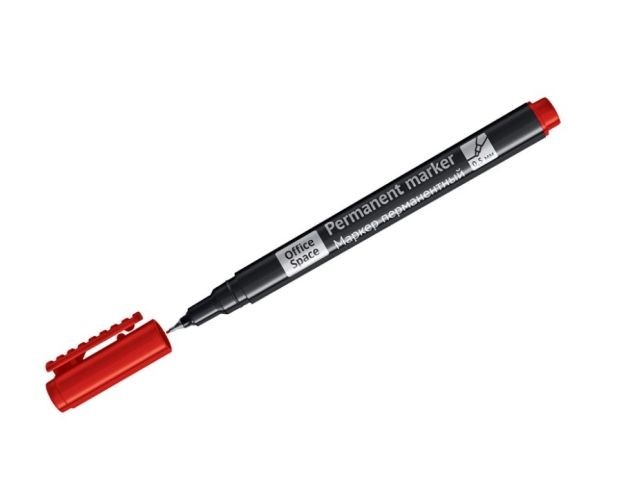 Маркер перманентный OfficeSpace красный, тонкий металл. наконечник, 0,5мм