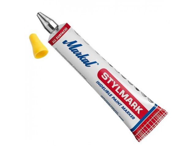 Markal Stylmark - маркер с металлическим шариковым наконечником предназначен для большинства поверхностей. Металлическая туба и густая краска обеспечивают маркировку на шероховатых вертикальных и потолочных поверхностях, а также обеспечивают сцепление краски с жирными и мокрыми поверхностями. Уникальная краска маркера устойчива к механическим воздействиям и воздействию растворителей, кислот, бензина, масла и других агрессивных веществ. Отличное решение для инвентаризации.