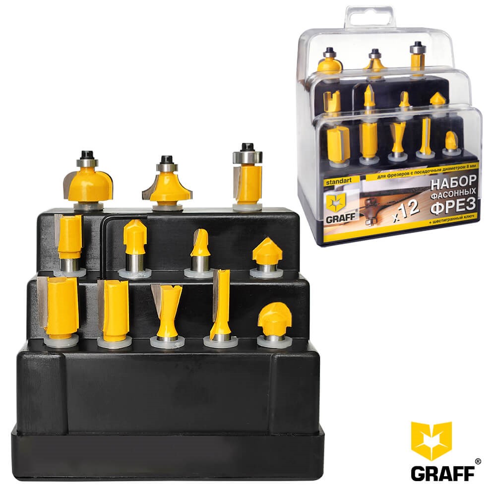 Набор из двенадцати фасонных фрез по дереву GRAFF из высококачественного материала с твердосплавными напайками. В набор входит шестигранный ключ.В набор входят фрезы следующие фрезы: