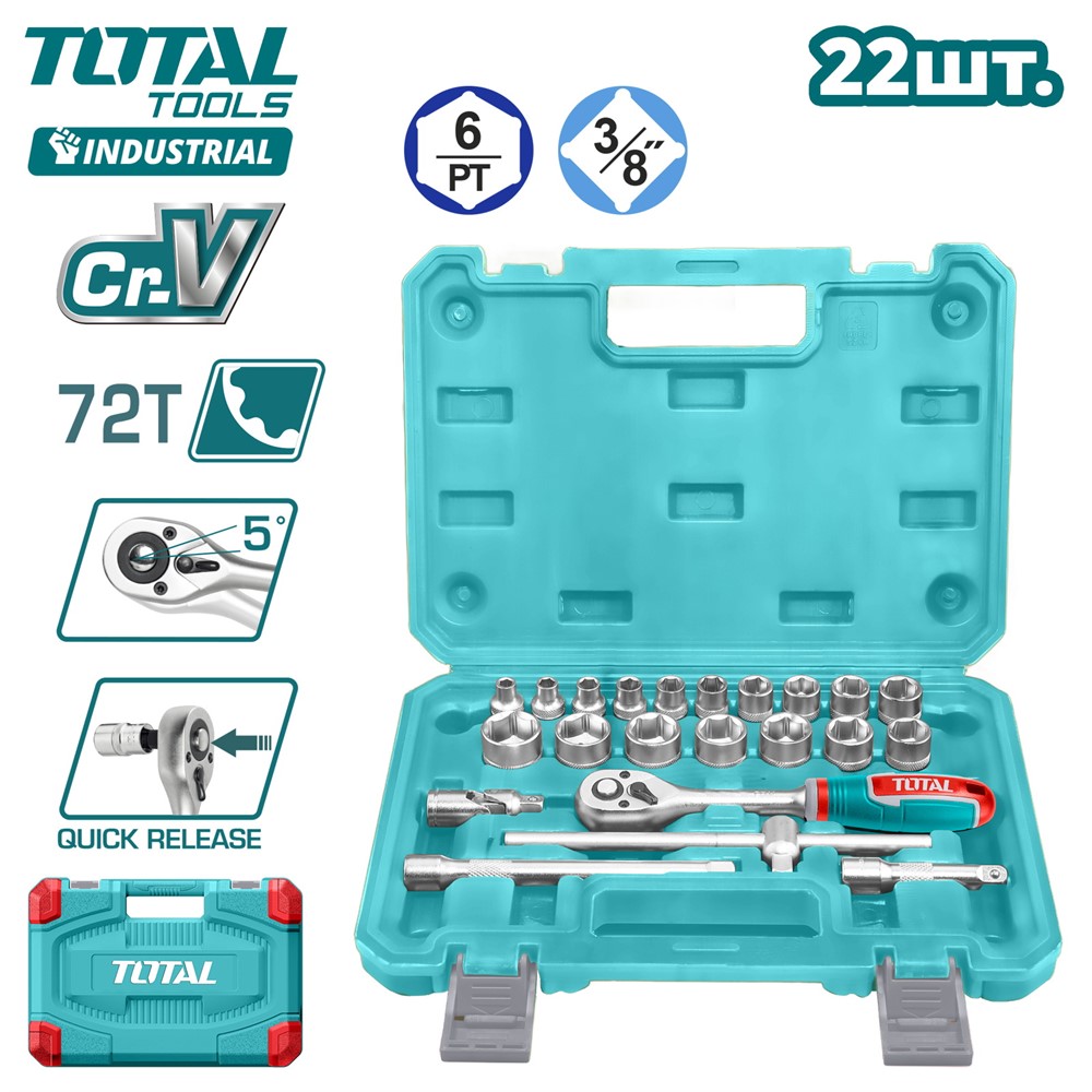 Набор инструментов 3/8 " TOTAL THT381221 (22 предмета)