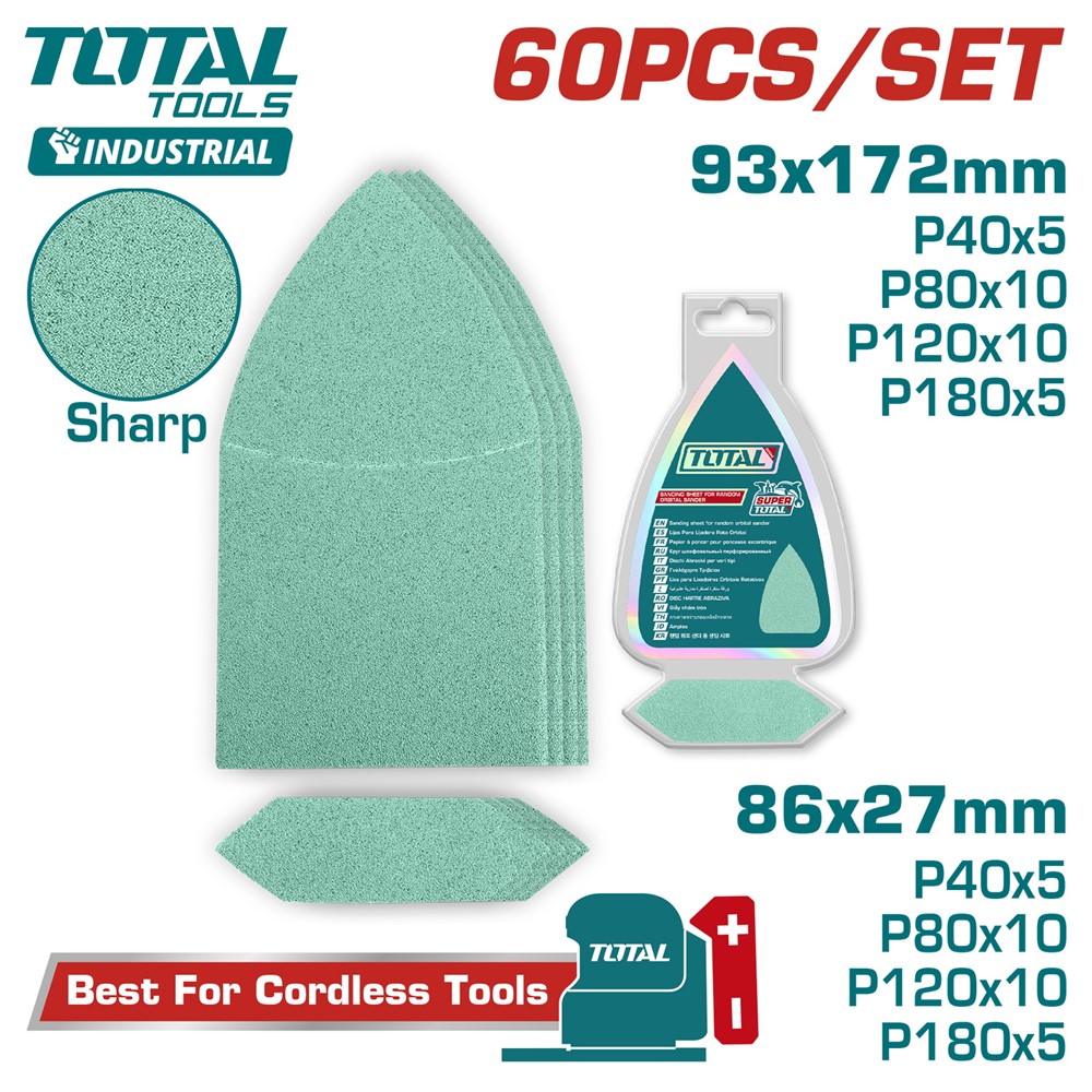 Набор шлифлистов 93х172мм, 86х27мм TOTAL (60 шт)
