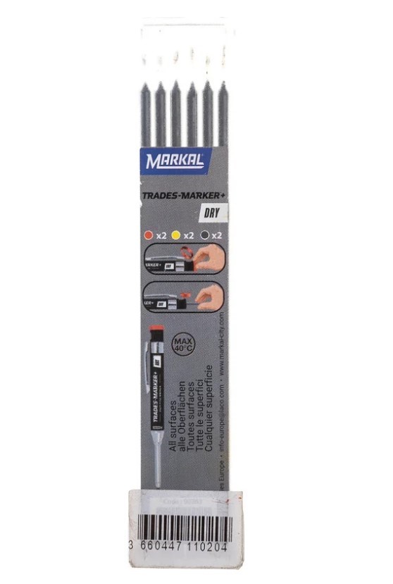 Набор стержней для карандаша артикул 96260 идеально подходит для труднодоступных мест (допускается глубокая маркировка в крепежных отверстиях). Стержень может писать или маркировать на всех типах поверхностей и материалах. Используется в строительстве, лесной и деревообрабатывающей промышленности, сварке и т.п., на такой поверхности как: сталь и железо, камень, кафельная плитка, стекло, пластик. В наборе 6 стержней (2 графитовых, 2 красных, 2 желтых).