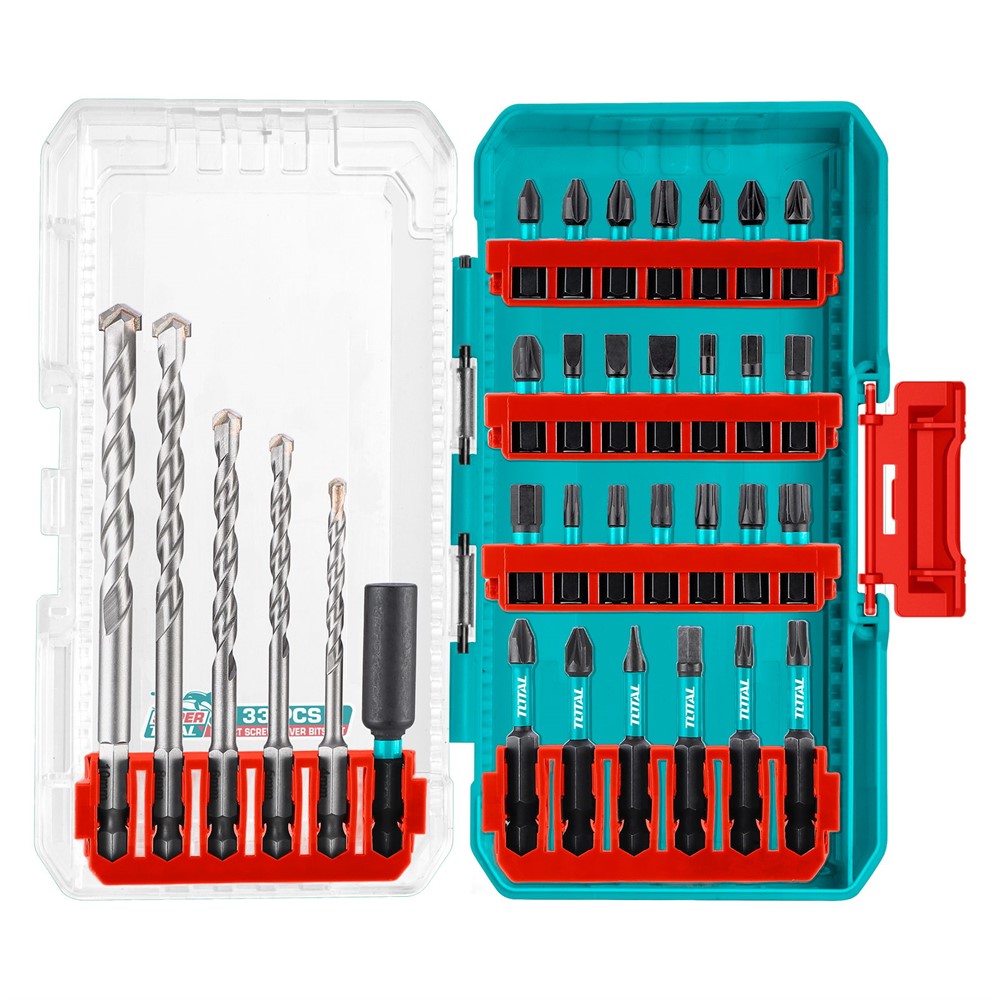 Набор сверл по бетону и бит TOTAL (33 шт)