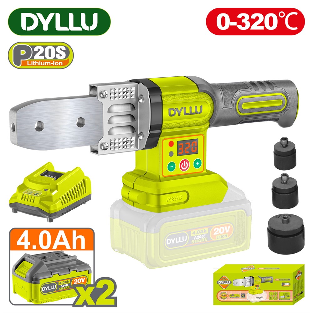 Паяльник для полипропиленовых труб аккумуляторный 20 В, 20/25/32 мм, 0-320°C, P20S, 2АКБ и ЗУ DYLLU