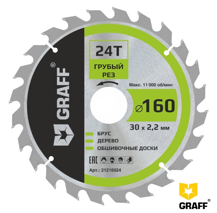 Пильный диск по дереву 160х1,4/2,2х30/25,4/20/16х48Т GRAFF предназначен для быстрого реза, поперечного или продольного распила древесины. Диск подходит для ручных и стационарных циркулярных (торцовочных) электрических пил.