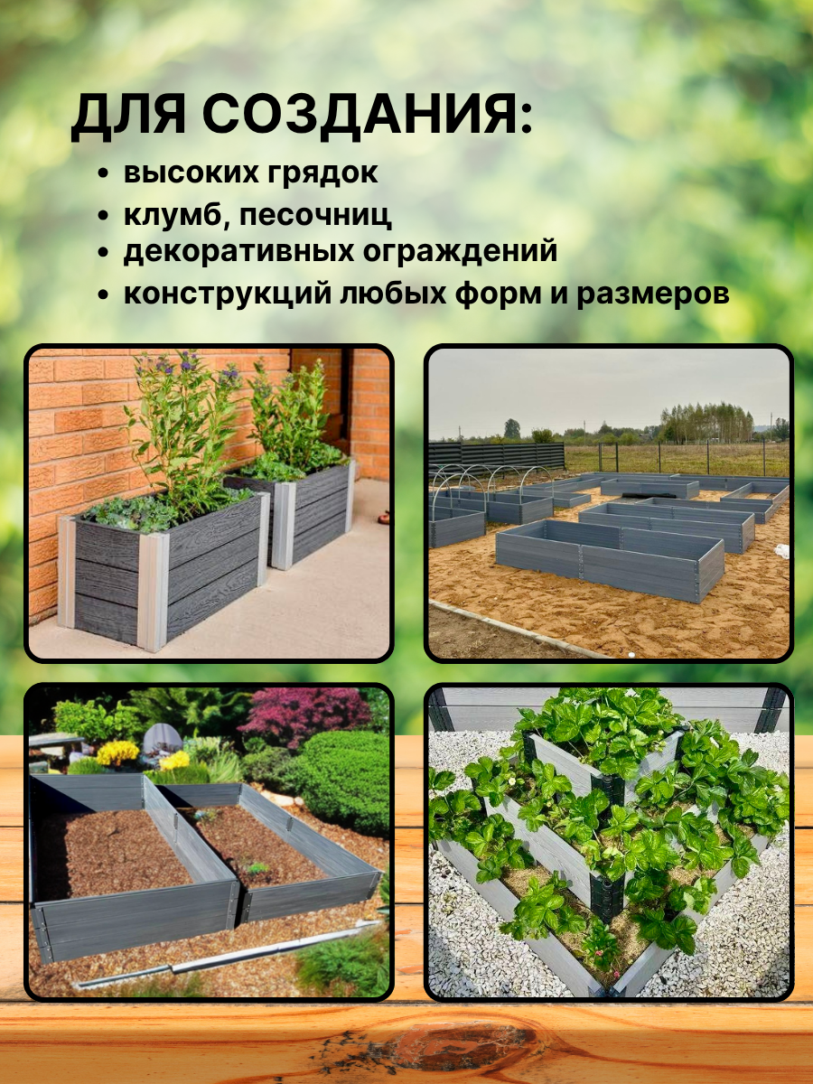 В сочетании с другими компонентами набора для создания приусадебных конструкций из ПВХ системы QuickFix позволяет легко и быстро собрать теплую высокую грядку, песочницу, декоративную горку для цветов, или ящик для компоста нужных размеров.