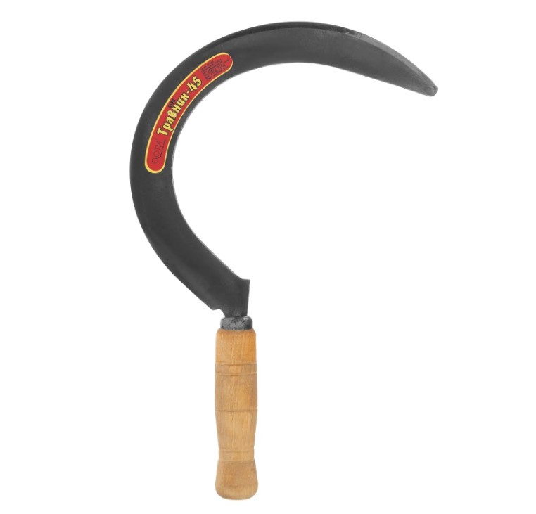 - Рукоятка серпа выполнена из дерева и не проскальзывает при работе, поэтому очень удобна.