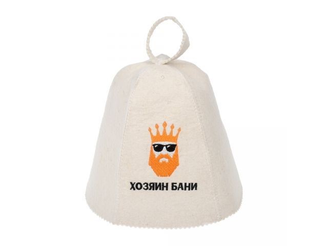 Шапка для бани и сауны с вышивкой Хозяин бани войлок, Банные штучки