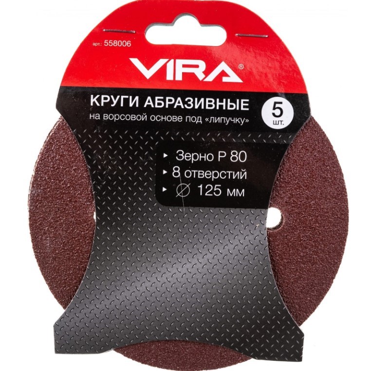 Шлифовальный круг 125мм P80 на липучке 8 отв. VIRA
