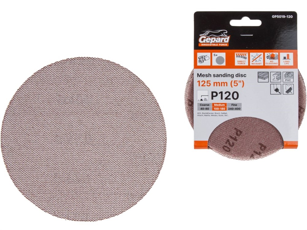 Шлифлист 125мм круг Р120 сетка, самосцепл. 5шт. GEPARD (GP5019-120)