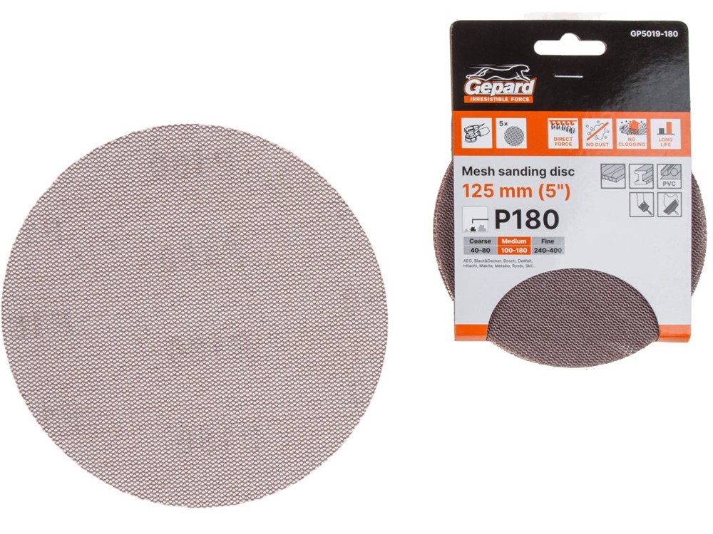 Шлифлист 125мм круг Р180 сетка, самосцепл. 5шт. GEPARD (GP5019-180)