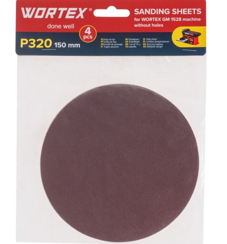 Шлифлист 150мм P320 без отв. 4 шт. для станка WORTEX GM 1528