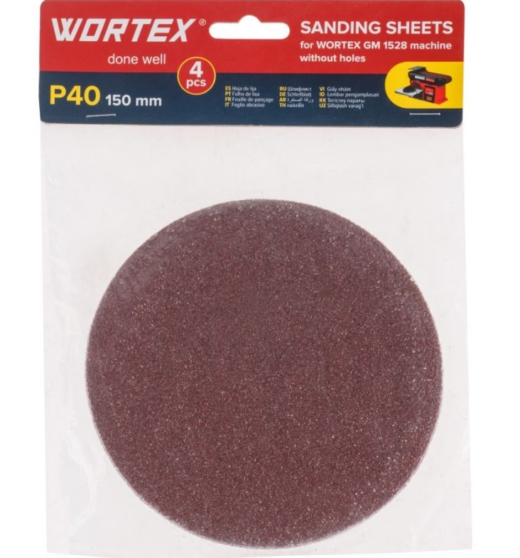 Шлифлист 150мм P40 без отв. 4 шт. для станка WORTEX GM 1528