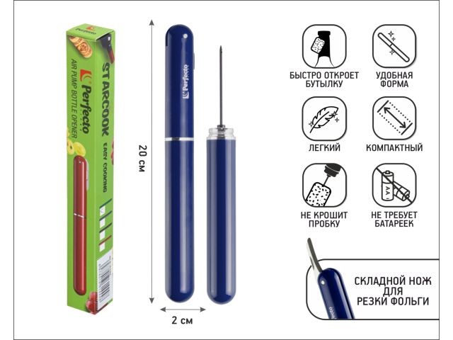 Штопор пневматический, 2,1 х 20,3 см, STARCOOK, синий, PERFECTO LINEA