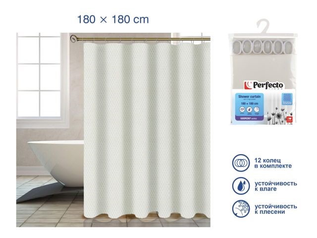 Шторка для ванной (12 колец в комплекте), 180x180 см, Harmony, жемчужно-белый, PERFECTO LINEA
