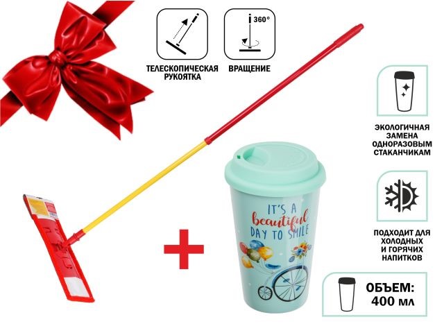 Швабра для пола с насадкой из микрофибры,Макарена+кружка керамическая,400 мл,PERFECTO LINEA