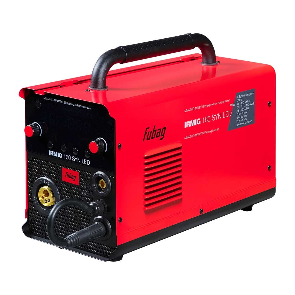 Сварочный полуавтомат Fubag IRMIG 160 SYN LED – высокопроизводительный инверторный аппарат с ярким LED-дисплеем. Выбор методов сварки MMA, MIG/MAG, TIG Lift. Имеет 11 встроенных синергетических программ.