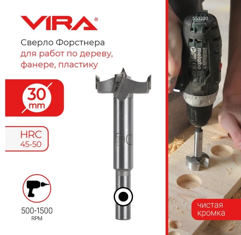 Сверло Форстнера 30 мм, длина 80 мм, VIRA