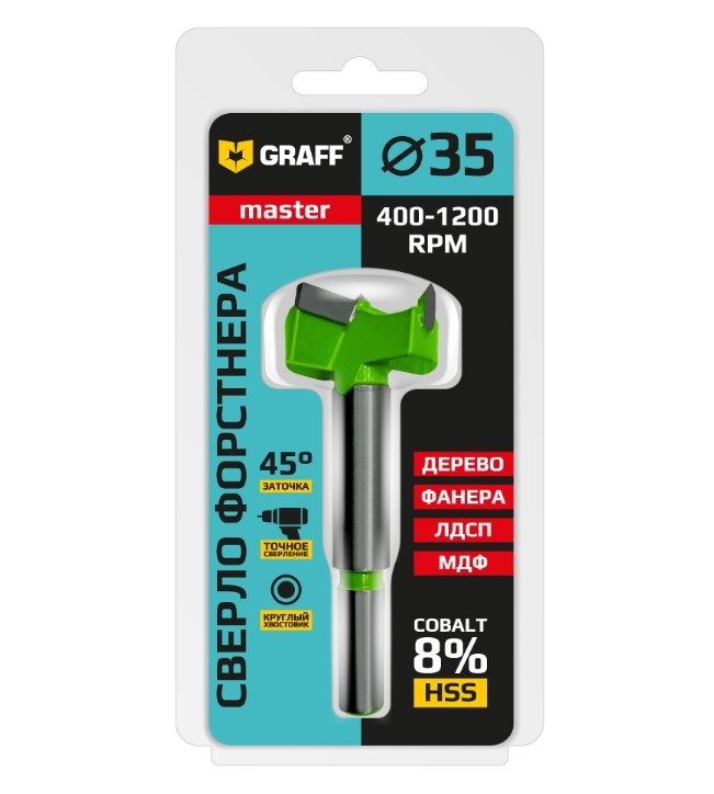 Сверло Форстнера 35 мм по дереву GRAFF