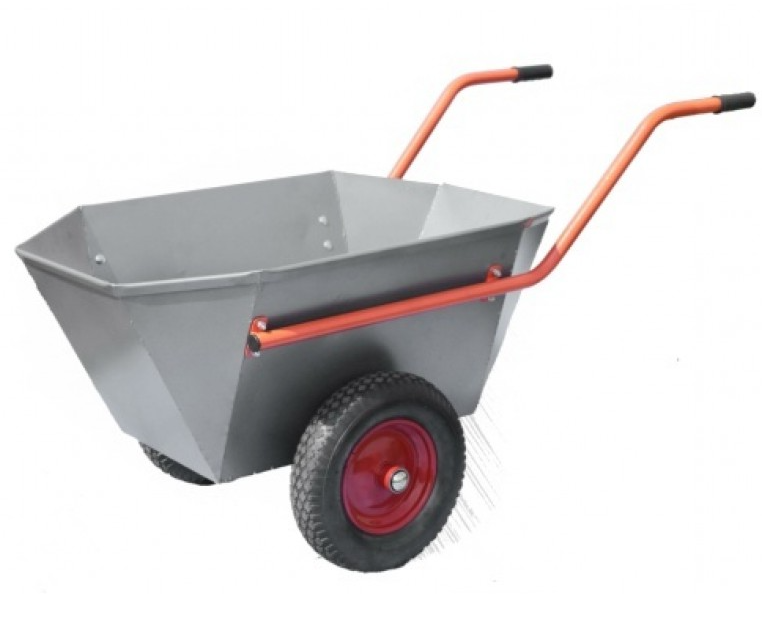 - Надежная двухколесная тачка с цельносварным кузовом и полиуретановыми колесами.