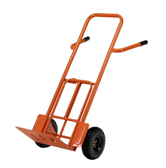 - Удобная транспортировка груза — пневматические колеса с камерами, резиновыми шинами и 2 шарикоподшипниками в каждом гасят вибрации и обеспечивают плавность хода.